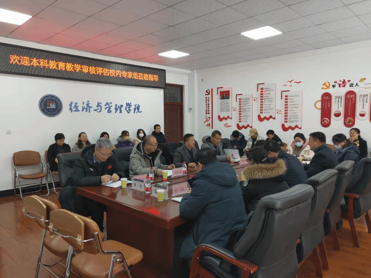 为持续提升本科教育教学质量,根据《哈尔滨师范大学新一轮本科教育教学审核评估方案》、《关于推进本科教育教学评建工作通知评建办发[2023]1号》要求和审核评估整体安排,2024年1月5日上午8点在崇师楼A208,本科教育教学审核评估校内专家组莅临经济与管理学院进行检查指导,第四检查组组长马克思主义学院书记宋佳东、副组长文学院书记刘宗波、组员历史学院书记徐振岐、教育科学学院书记刘兆华、马克思主义学院副院长白夜昕、文学院副院长陈颖、历史文化学院副院长杨超、教育科学学院范魁元、秘书胡宁宁9位专家出席会议,经济与管理学院党委书记蒙国军、院长徐光、党委副书记翟力、各专业负责人、各系主任参加会议。