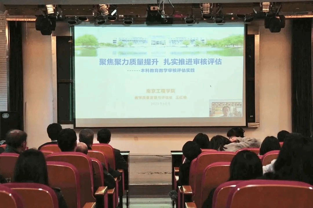 为配合学校开展审核评估工作,帮助理解评估实施各环节工作的主要内容,特邀请南京工程学院教学质量管理与评估处王红艳处长,在 2023年 10 月 18 日进行线上以“聚焦聚力质量提升,扎实推进审核评估——本科教育教学审核评估实践”为题的讲座,分享第二类第二种评建实践经验分享。我院在田家炳407设立学院分会场,学院领导班子出席会议,全体教师参加会议观看学习。