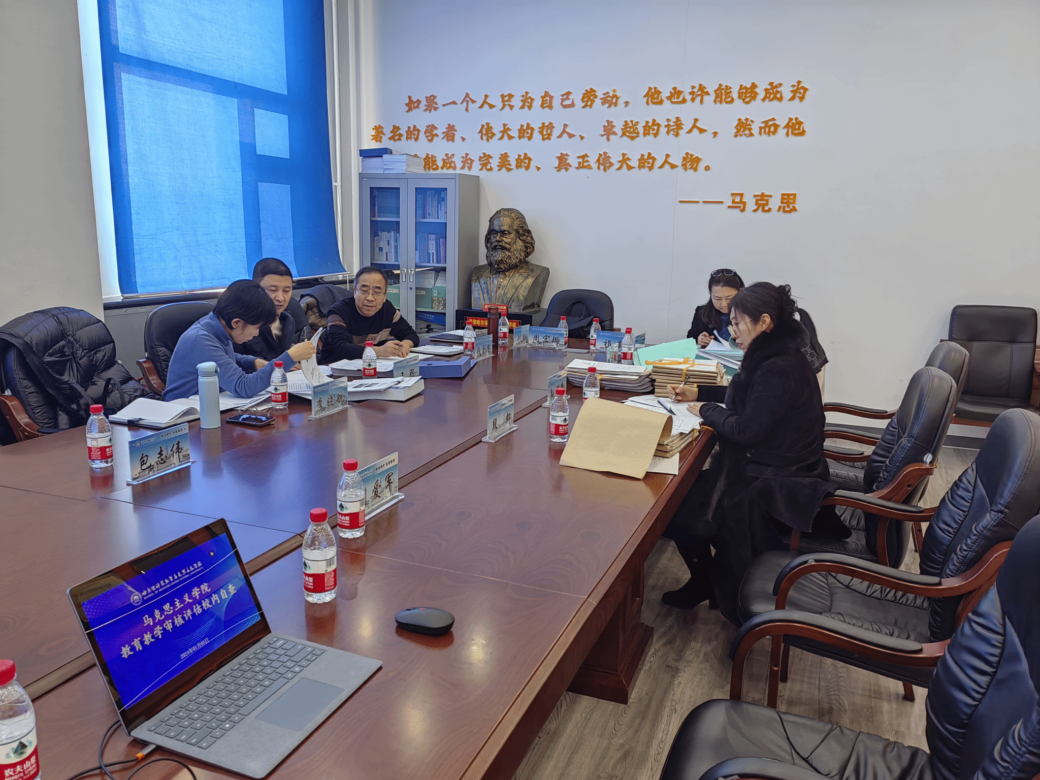 会上,专家组组长李晓航对此次校内自查工作进行全面介绍,深刻阐述了认真做好本科教育教学审核评估自查工作的重要意义,并强调要以此次自查工作为契机,及时发现问题、及时整改问题,切实为做好新一轮本科教育教学审核评估做好充足准备。马克思主义学院思想政治教育系主任王婷,从学院开展教育教学思想讨论情况、专业培养目标与特色、以及培养方案调整情况、教学档案及支撑材料的搜集、整理、归档及审核情况等方面向专家作详细汇报。在听取汇报并对教学文档、支撑材料、毕业论文等材料进行现场审阅的基础上,专家组成员张春玲、张金忠、郑杨、祁凯等分别有针对性地提出了修改意见和建议。